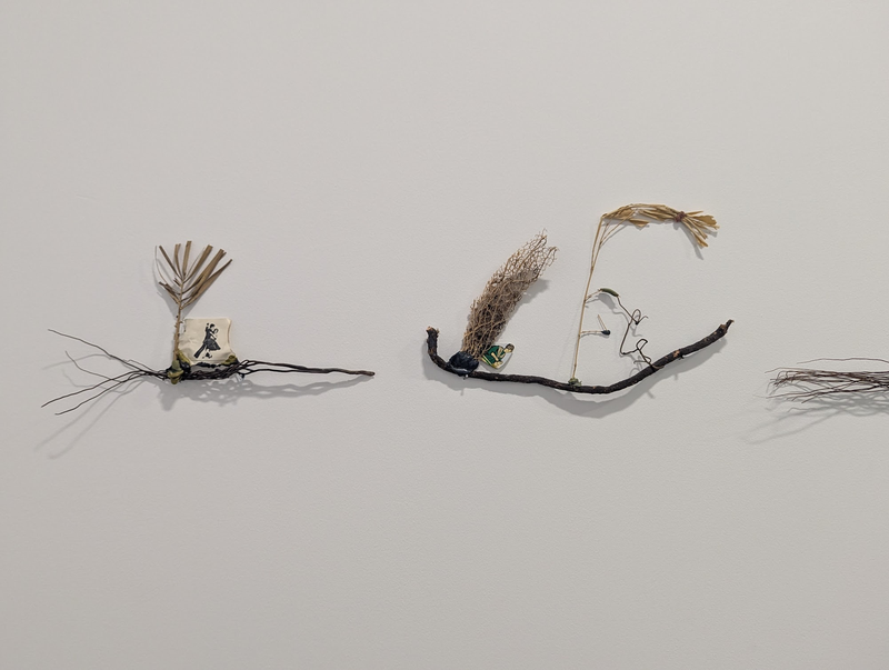 Daniel DEZEUZE, Embarcations (extrait), 1982 - 1983, Sculpture, (détail), 8 éléments murau, Fibres végétales, algues, images, cire, 8 x (35 x 20 x 3 cm) environ.