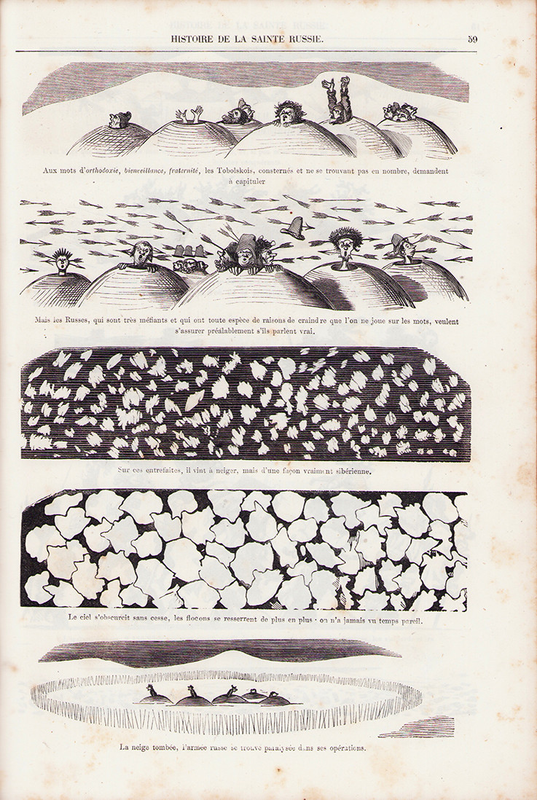 Planche du recueil de Gustave DORE, Histoire pittoresque dramatique et caricaturale de la Sainte Russie, 1854, Encre de Chine, éditions 2042, Strasbourg, France