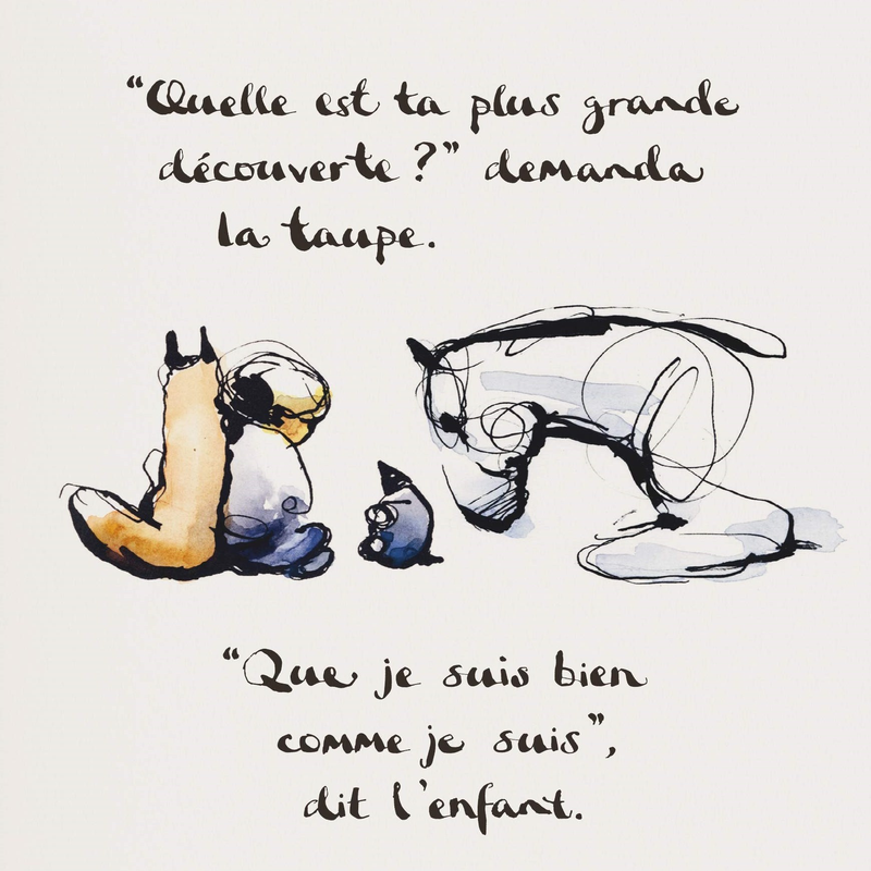 Planche de l'album de Charlie MACKESY, L'Enfant, la Taupe, le Renard et le Cheval, 2020, encre de Chine et aquarelle, éditions Les Arènes, Paris, France
