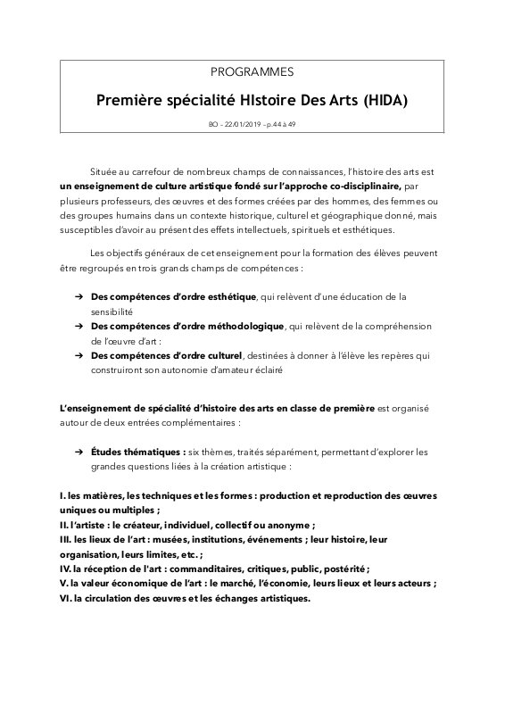 Cours d'histoire des arts